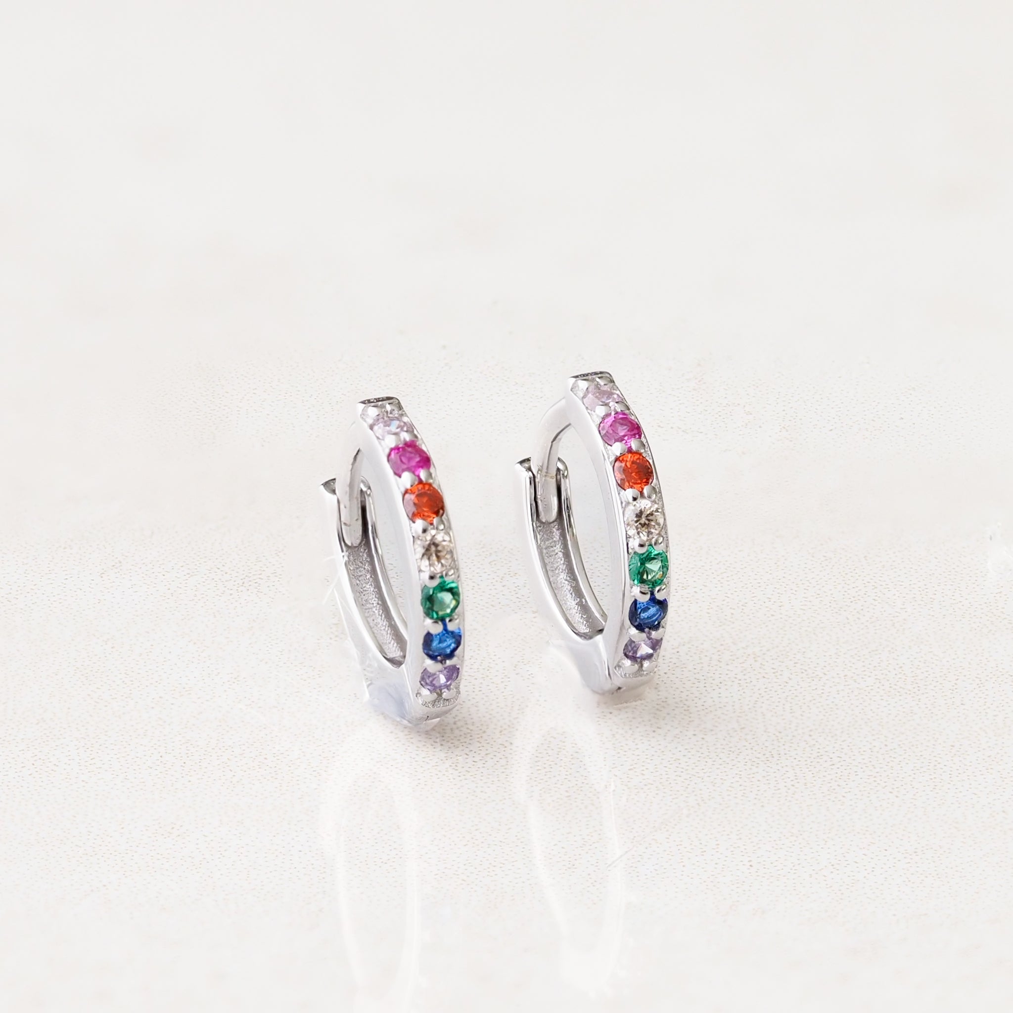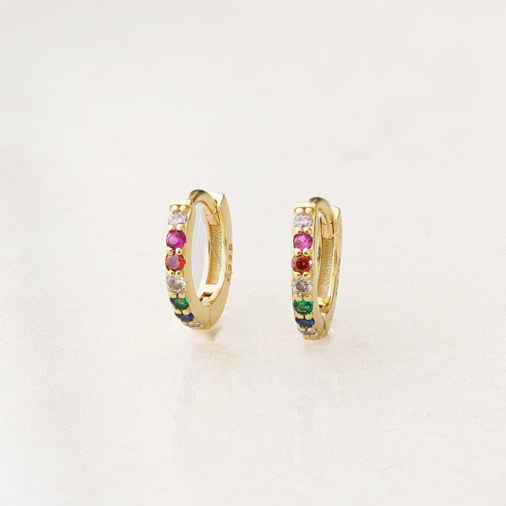 Pridaura’s Rainbow Pride Pave Huggie Earrings | 10mm are a colourful, elegant and inclusive earring design that symbolise the celebration, pride and support of the LGBTQ+ community.